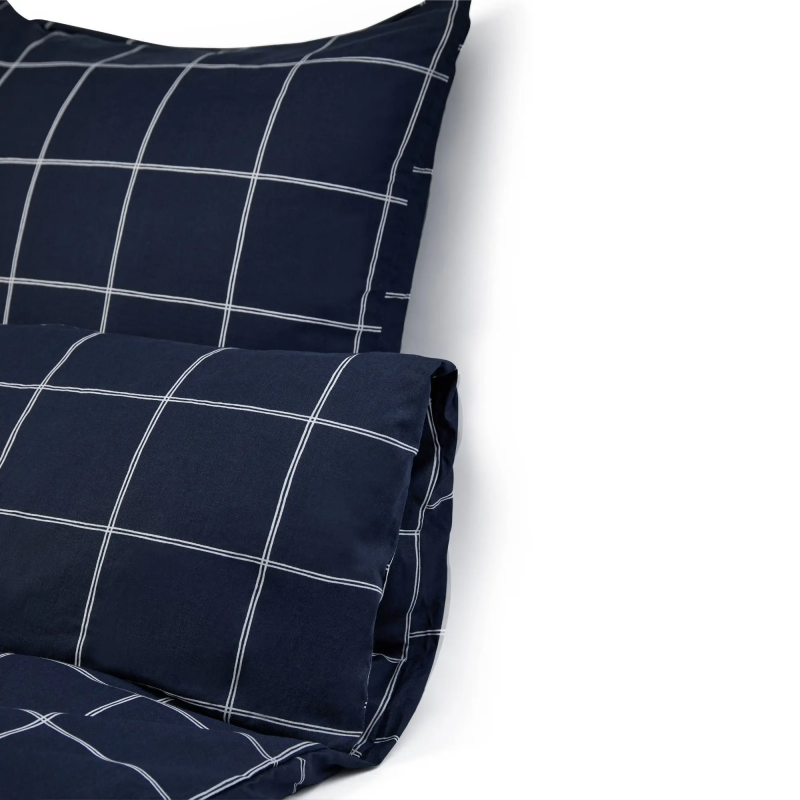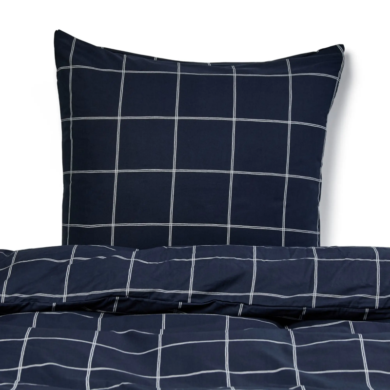 Sengetøj 100% bomuld - Mørkeblåt sengesæt med hvide tern - Nordstrand Home dynebetræk