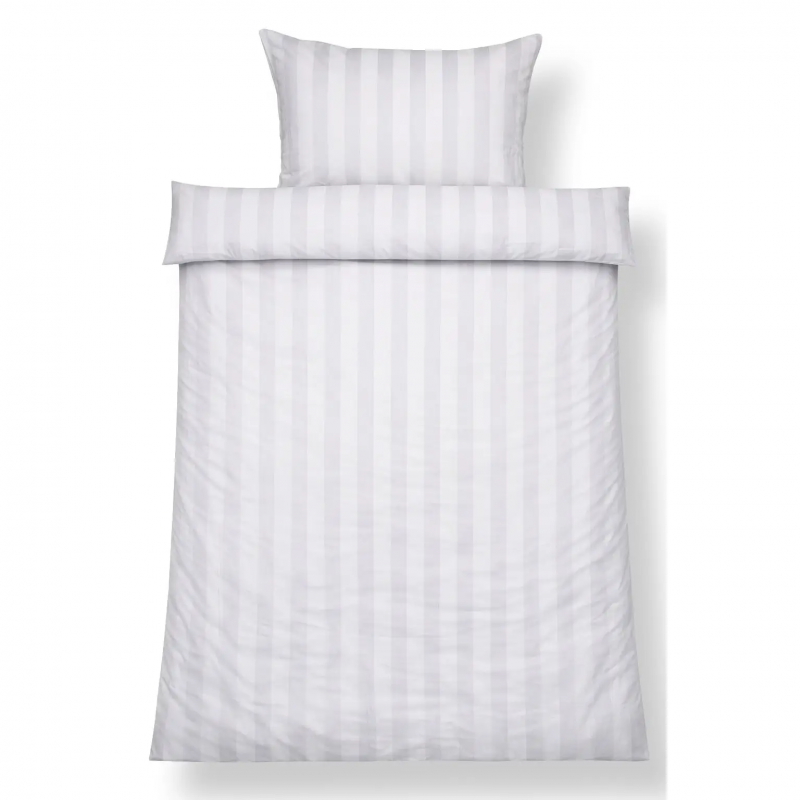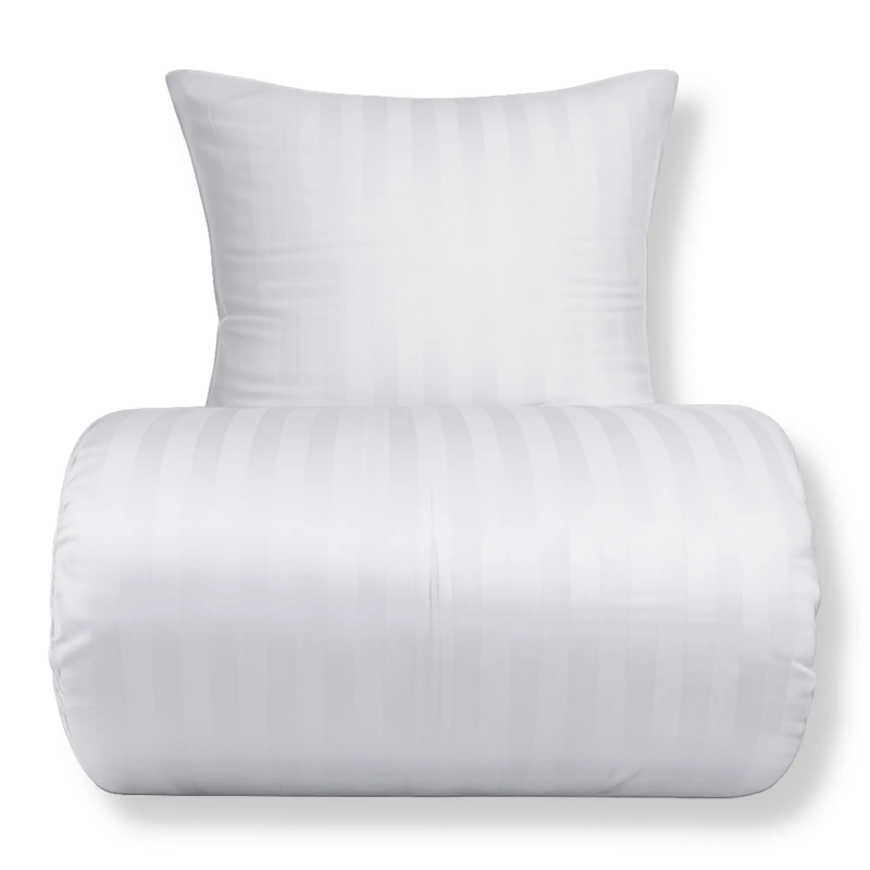 Bambus sengetøj - 100% Naturligt bambus - Hvidt, jacquardvævet sengesæt med striber