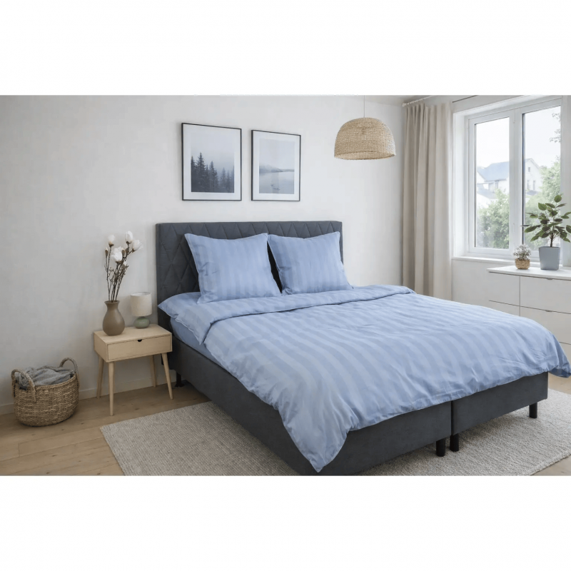 Bambus pudebetræk - 100% Naturligt bambus - 60x63 cm - Blåt, jacquardvævet hovedpudebetræk med striber