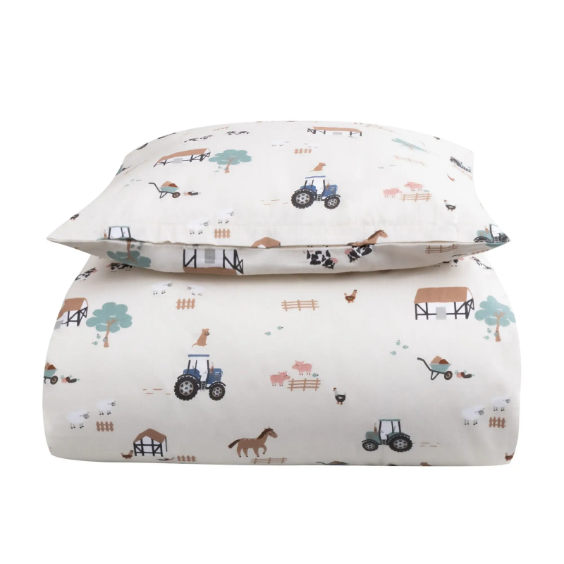 Sengetøj 100x140 cm - Junior sengesæt med bondegårds motiver - 100% bomulds sengelinned - Nordstrand Home