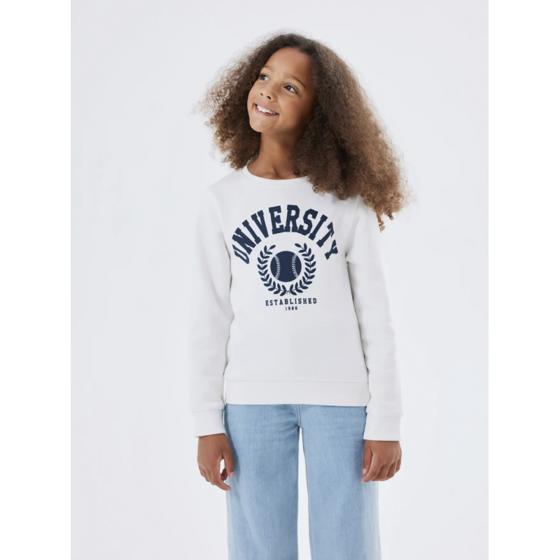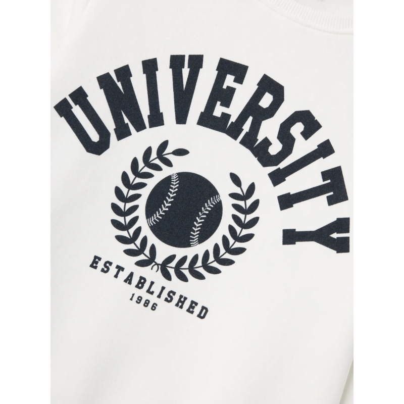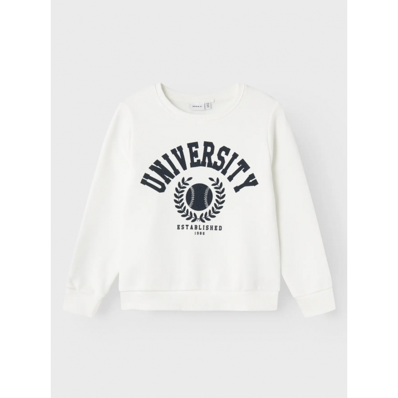 Opdater garderoben med denne klassiske hvide sweatshirt fra Name It, designet til både drenge og piger. Sweatshirten er fremstillet i en blød loop back-kvalitet af 70% økologisk bomuld og 30% polyester, som sikrer en behagelig pasform og god holdbarhed. Den børstede inderside føles ekstra blød mod huden, hvilket gør trøjen ideel til hverdagsbrug i skole, børnehave eller fritid. Med rund hals, lange ærmer og ribkanter har den et tidløst og rent udtryk, der passer til alt fra jeans til leggings. Et diskret rubberprint foran giver et moderne touch, uden at gå på kompromis med det minimalistiske design. En bæredygtig og komfortabel basisdel, der hurtigt bliver en favorit i børnenes garderobe.