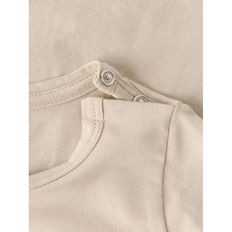 Opgrader din babys garderobe med denne Name it langærmede trøje i beige (Peyote). Den er lavet af blød single jersey med 95% økologisk bomuld og 5% elastan, hvilket giver en behagelig og fleksibel pasform hele dagen. Trøjen har en rund hals, lange ærmer og et pigmentprint for et blødt look på lysere stof. Perfekt til hverdagsbrug og små eventyr, og designet med fokus på komfort og bevægelsesfrihed. Et stilfuldt og funktionelt basisplagg til babyer.