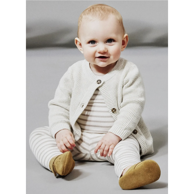 Den neutrale farve gør cardiganen nem at kombinere med både bukser, bodyer og heldragter. Et oplagt valg til forældre, der ønsker komfort, kvalitet og et tidløst design i barnets garderobe.
