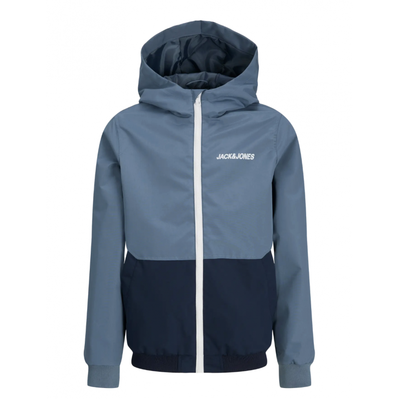 Denne Jack & Jones MINI bomberjakke i blå er en let og sporty overgangsjakke, perfekt til forår og milde dage. Jakken er fremstillet i slidstærkt vævet materiale af genanvendt polyester, hvilket gør den både funktionel og mere bæredygtig. Den har hætte, lange ærmer og ribkanter ved ærmerne for en behagelig pasform. Lynlåslukning og praktiske sidelommer gør jakken ideel til hverdagsbrug, mens logo-detaljen giver et cool og moderne look til drenge.