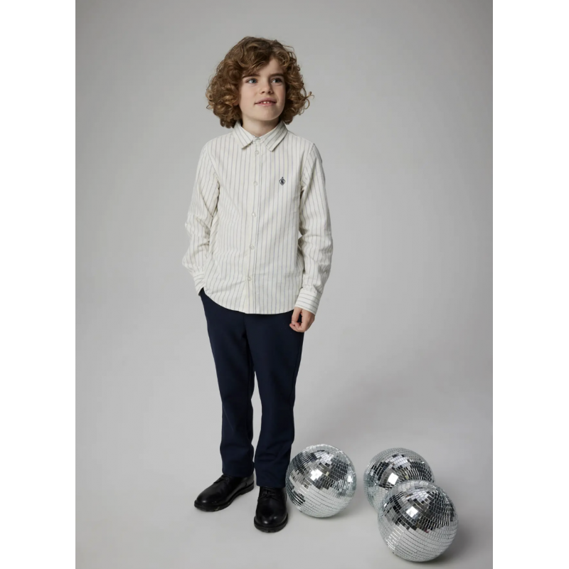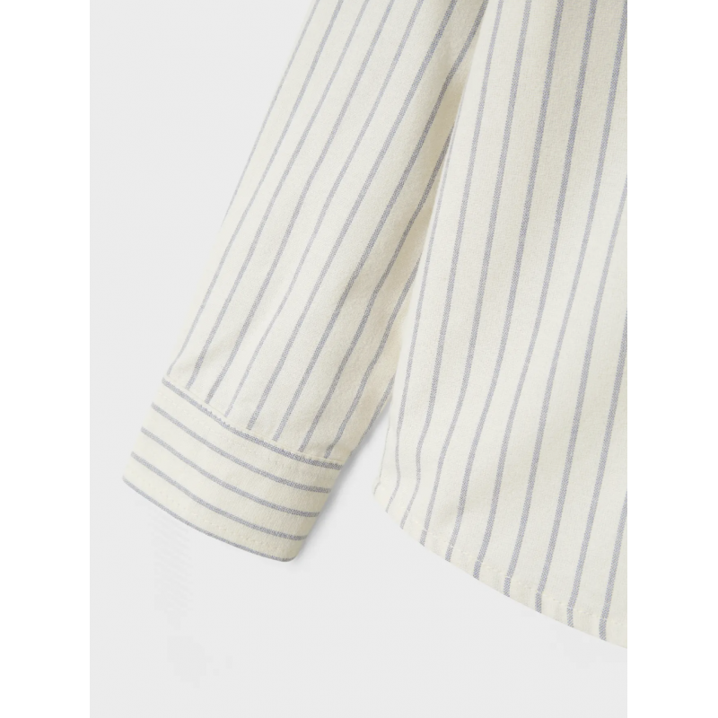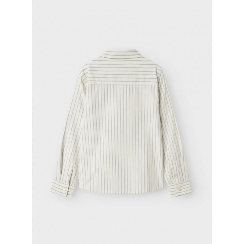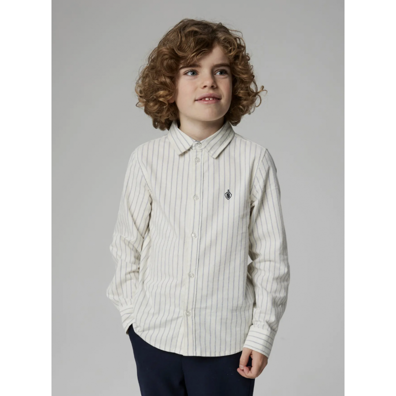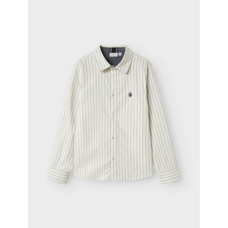 Denne Name It langærmede skjorte til drenge i farven Jet Stream / Navy Blazer er et stilfuldt valg til både festlige lejligheder og pæn hverdagsbrug. Skjorten er fremstillet i 100% økologisk bomuld med klassisk Oxford-vævning, som giver en flot struktur og et tidløst look. Den har skjortekrave, knaplukning, knapmanchetter og fine broderidetaljer, der fuldender det elegante design. Skjorten har regular fit, hvilket sikrer god komfort og bevægelsesfrihed hele dagen.