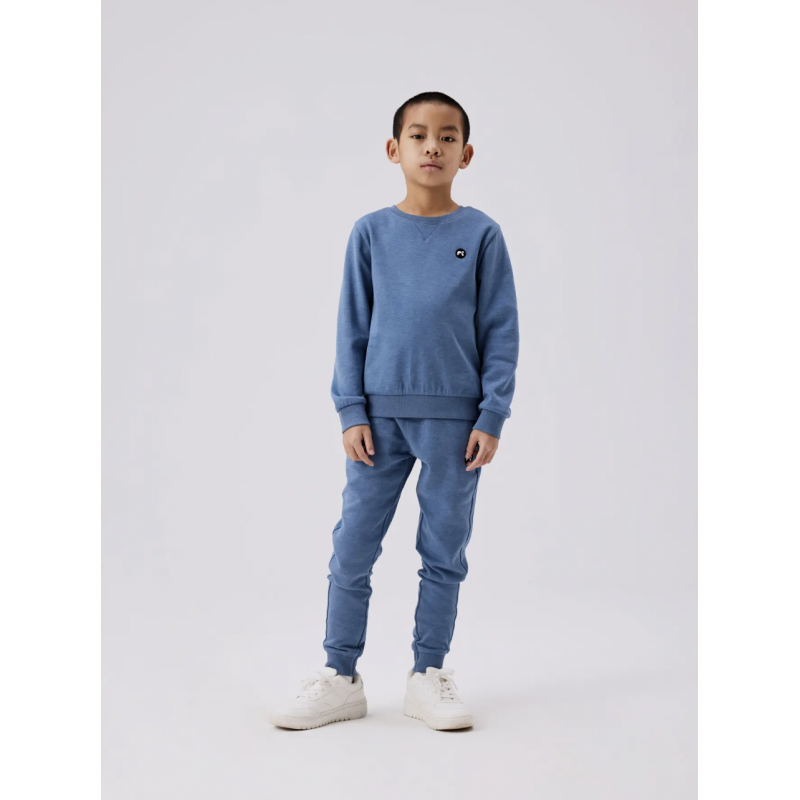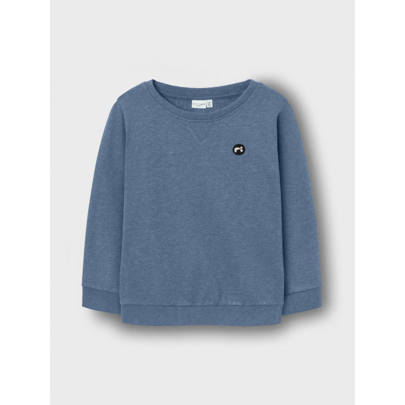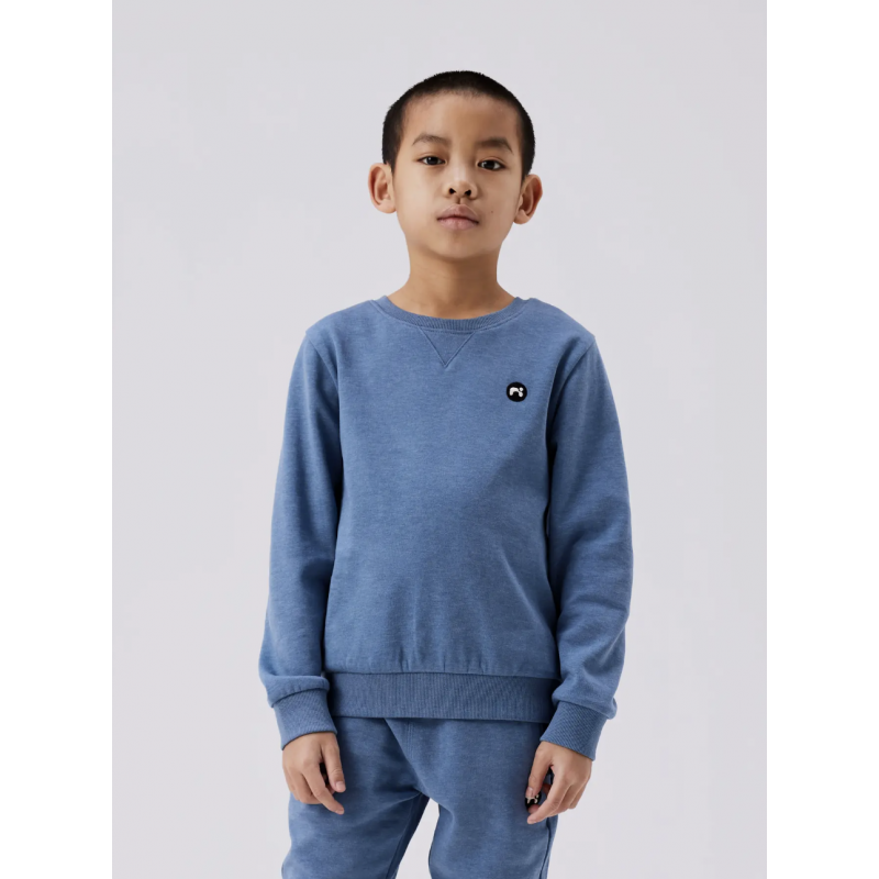 Giv dit barn en stilren og behagelig hverdagsfavorit med denne blå sweatshirt fra Name It. Sweatshirten er lavet i en blød loop back-kvalitet af 60% bomuld og 40% polyester, der giver en glat overflade og en børstet, blød inderside. Den har klassisk rund hals, lange ærmer og ribkanter, som sikrer en god og komfortabel pasform. Den enkle badge-detalje foran tilføjer et sporty touch, mens den smukke blå farve gør trøjen let at matche med både jeans, chinos og sweatpants. En perfekt basic sweatshirt, der kan bruges året rundt – både til skole, leg og afslappede weekender.