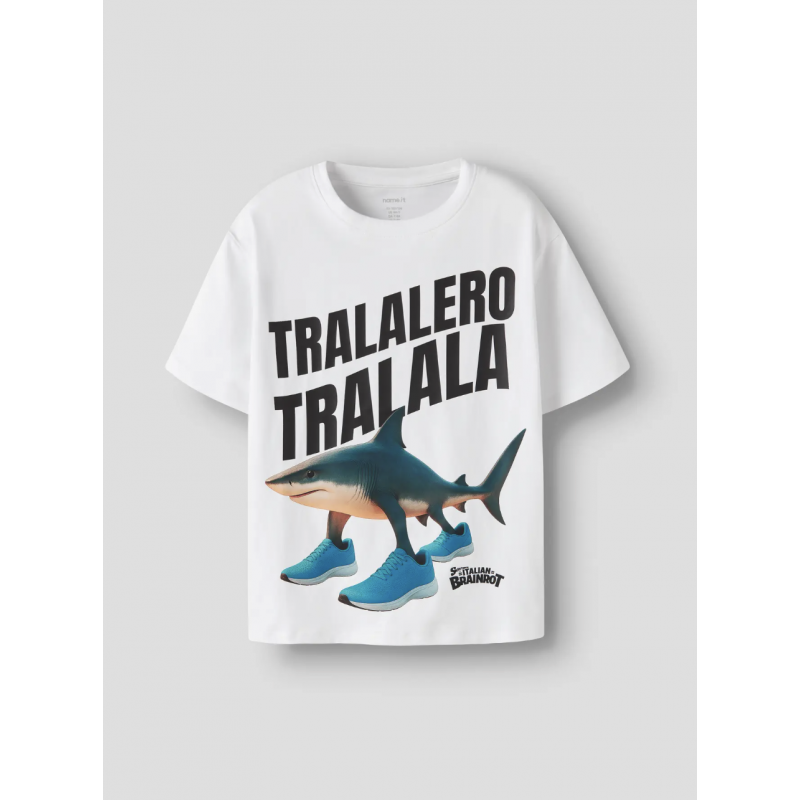 Opgrader dit barns garderobe med denne Name It "Italian Brainrot" T-shirt til drenge i hvid. T-shirten er fremstillet i 95% bomuld og 5% elastan med single jersey, hvilket gør den blød, let og strækbar for komfort hele dagen. Med rund hals, korte ærmer og et realistisk fotoprint kombineret med blød rubber print, bringer den den sjove og farverige Italian Brainrot-memeverden til live – populær blandt børn og teenagere på TikTok. Perfekt til både hverdag og leg, hvor stil og komfort går hånd i hånd.