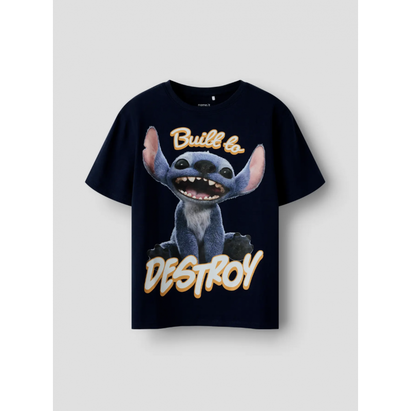 Opdater garderoben med den seje Name it "Stitch" T-shirt i navy blazer til drenge. T-shirten er lavet i blød og strækbar single jersey med 95% bomuld og 5% elastan, som giver høj komfort og god bevægelsesfrihed hele dagen. Det flotte gummi-print af Disney’s Stitch tilføjer et legende og cool udtryk. Med korte ærmer, rund hals og regular fiter T-shirten perfekt til både hverdag, skole og fritid.