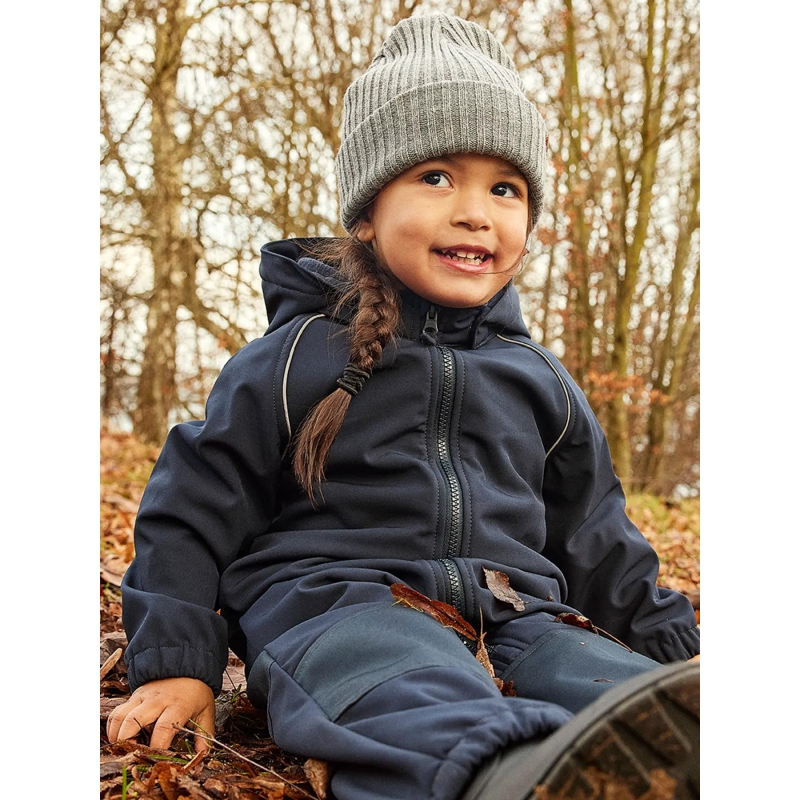 Gør dit barn klar til alle vejrforhold med denne softshell flyverdragt fra Name It i stilfuld Dark Sapphire. Flyverdragten er lavet af 94% genanvendt polyester og 6% elastan, hvilket gør den vandafvisende, åndbar og vindtæt– ideel til leg og udendørs aktiviteter på både blæsende, kolde og regnfulde dage. Med BIONIC FINISH® ECO-behandling uden fluorstoffer (PFAS-fri), delvist tapede sømme, membran mellem foring og yderstof samt vandtæthed på 8.000 mm, sikrer flyverdragten fuld beskyttelse mod vind og vand. Den har justerbare elastiske fodstropper, elastiske ærmer og benkanter, fleeceforing, let isolering, reflekterende detaljer, aftagelig hætte og forstærkede knæ og bag for ekstra holdbarhed. Med sidelommer, zip-lynlås med beskyttelse og en moderne pasform kombinerer denne flyverdragt funktionalitet, komfort og stil – perfekt til børn i alle aldre.