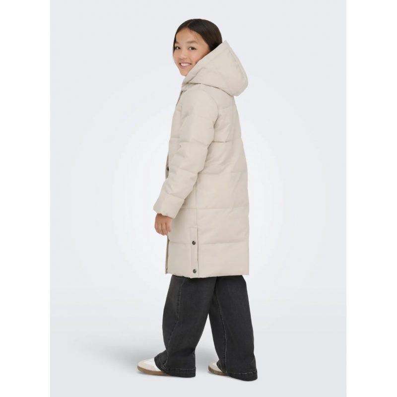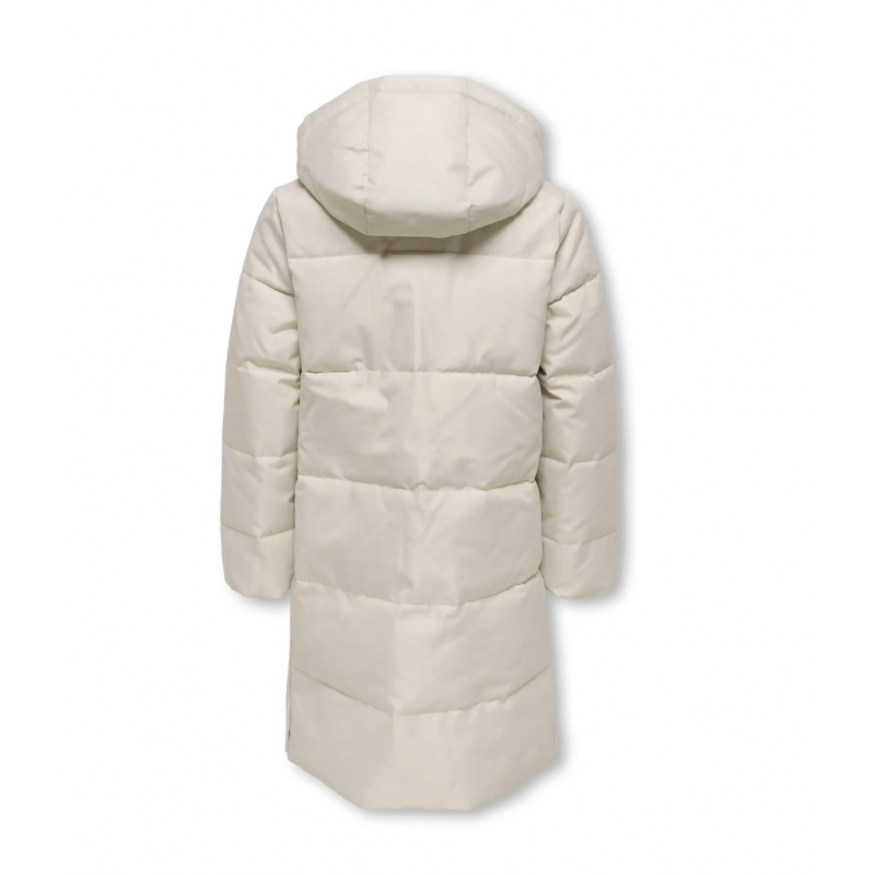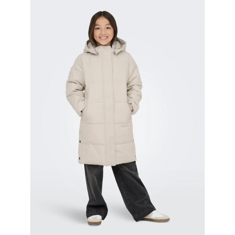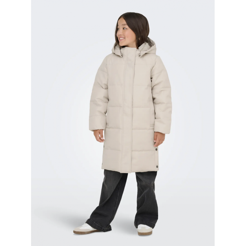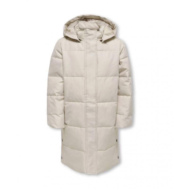 Den er vindafvisende og foret med premium syntetisk polyesterfyld, som giver optimal varme uden at føles tung. Den lange længde og hætte beskytter effektivt mod kulde og blæst, mens lynlåslukningen gør den nem at tage af og på.