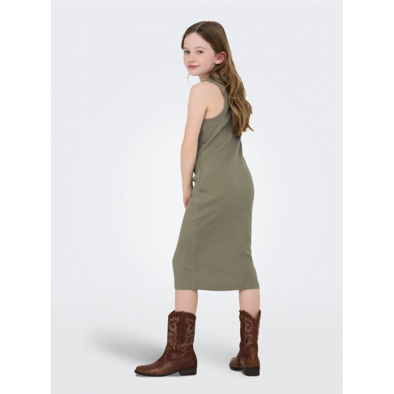 Giv din pige et friskt og moderne look med denne smukke KIDS ONLY kjole i den flotte grønne farve Mermaid. Kjolen er designet i en blød og strækbar jersey kvalitet, som sikrer høj komfort og bevægelsesfrihed hele dagen. Den tætsiddende bodycon pasform giver et stilrent og feminint udtryk, mens det ærmeløse design gør den perfekt til både varme dage og lag-på-lag styling.