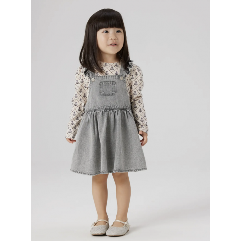 Skab et trendy og komfortabelt look med Name It Denim kjole i lysegrå til piger. Kjolen er lavet af blød og slidstærk twillvævet denim bestående af 80% bomuld og 20% genanvendt bomuld, hvilket gør den både komfortabel og bæredygtig. Den lysegrå vask giver et lyst, klassisk denim-look, perfekt til skole, leg og hverdagens aktiviteter. Kjolen har firkantet hals, er ærmeløs og har en praktisk brystlomme, elastik i taljen og fine flæsedetaljer, som tilføjer charme og feminint touch. Den regelmæssige pasform sikrer komfort og bevægelsesfrihed, mens kvalitetsmaterialerne sikrer holdbarhed gennem daglig brug. Designet kombinerer funktionalitet og stil, så dit barn kan bevæge sig frit og samtidig se moderigtigt ud. Med minimum 20% genanvendt bomuld gør denne denimkjole det nemt at vælge et bæredygtigt og moderne outfit til børnegarderoben.