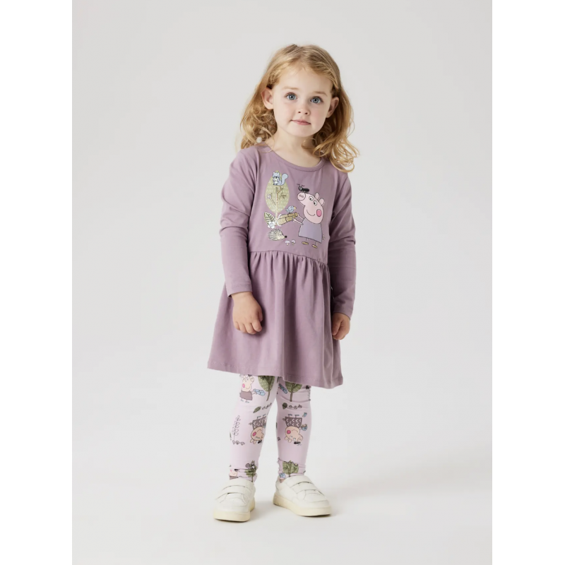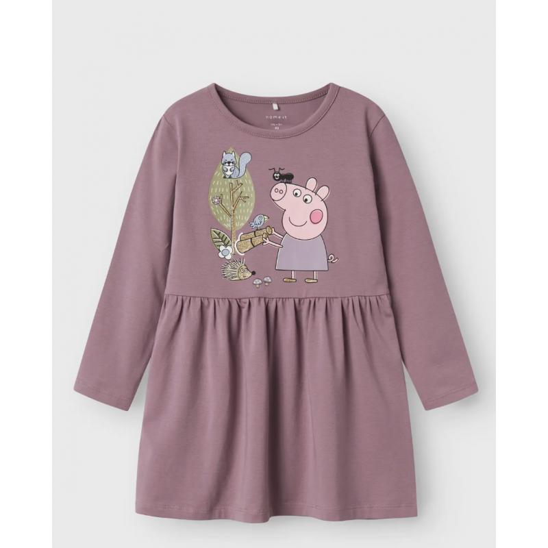 Gør hverdagen sjovere med denne søde Name It “Gurli Gris” kjole i lilla Elderberry til piger. Kjolen er fremstillet i blød og strækbar single jersey-kvalitet af 95% kæmmet bomuld og 5% elastan, som sikrer maksimal komfort og bevægelsesfrihed hele dagen. Det lette jerseystof føles behageligt mod huden, mens den klassiske rund hals og lange ærmer gør kjolen ideel til både skole, leg og fritid. Det fine motiv med Gurli Gris, kombineret med diskrete glimmerdetaljer og blød gummiprint, giver et legende og farverigt udtryk, som børn vil elske. Med sin standard pasform og høje kvalitet er kjolen perfekt til daglig brug, samtidig med at den bærer et strejf af magi fra Gurli Gris’ univers. En oplagt favorit til alle små fans af den elskelige gris, der altid spreder smil og latter.