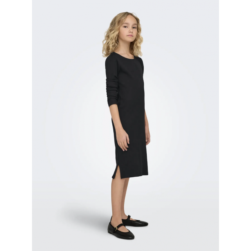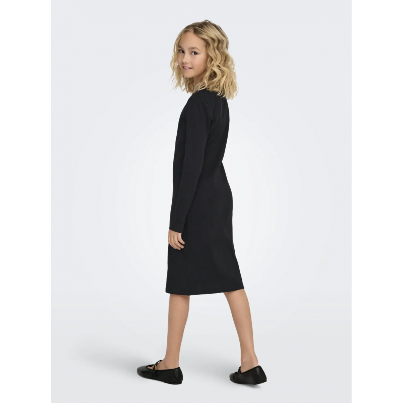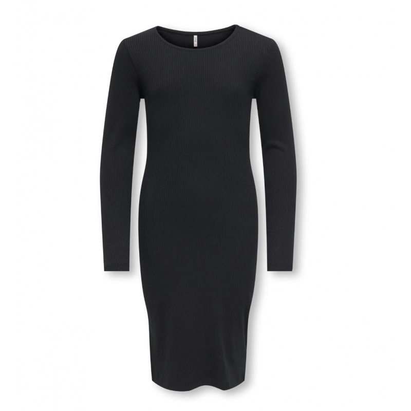 Giv din pige et stilfuldt og moderne look med denne sorte midi kjole fra KIDS ONLY. Kjolen er designet i en blød og strækbar jersey kvalitet, som sikrer maksimal komfort og bevægelsesfrihed hele dagen. Den tætsiddende bodycon pasform fremhæver silhuetten på en flot og feminin måde, samtidig med at materialet føles behageligt mod huden.