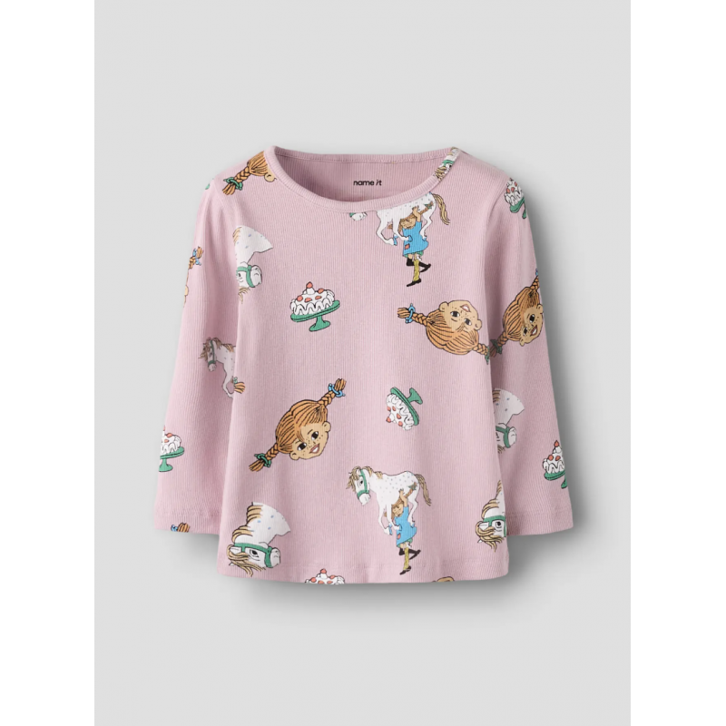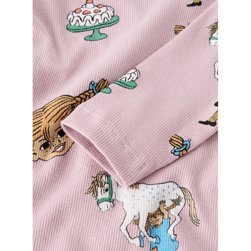 Opdater pigegarderoben med den charmerende Name it “Pippi Langstrømpe” langærmede trøje i lyserød (Keepsake Lilac) til piger. Trøjen kombinerer høj komfort med et legende og ikonisk design inspireret af Pippi Langstrømpe – den elskede figur skabt af Astrid Lindgren.