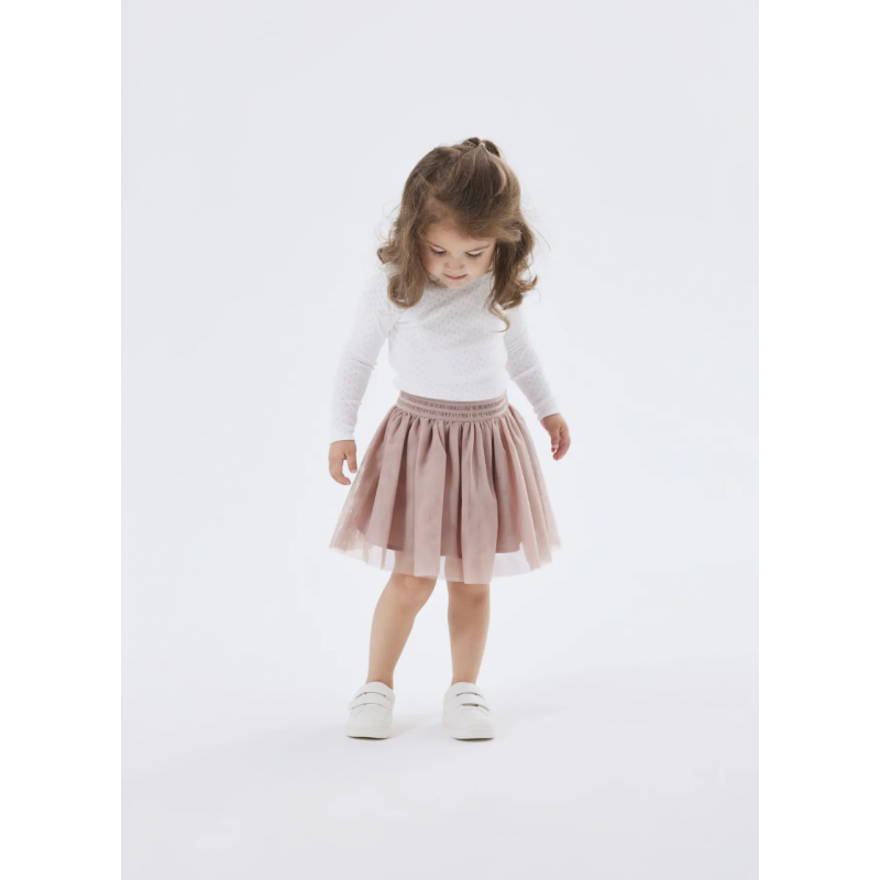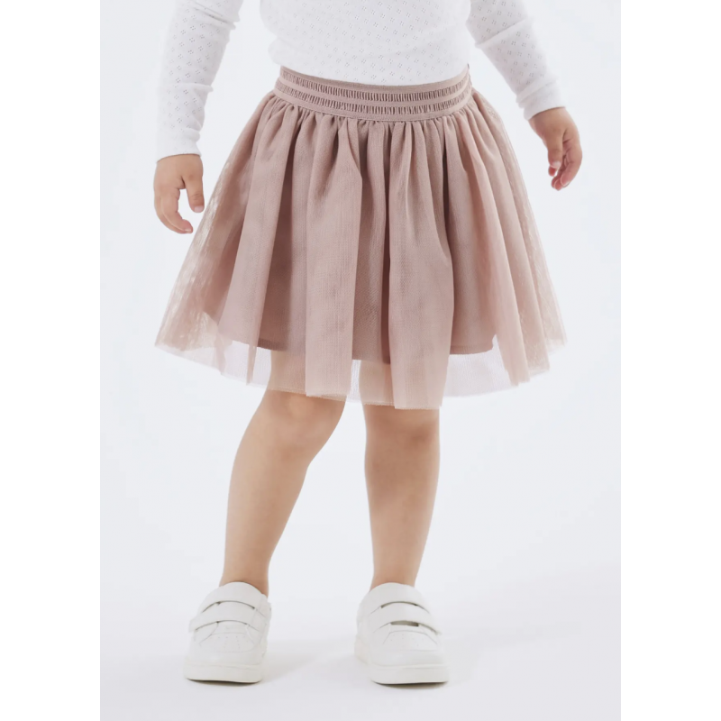 Gør dit barn klar til festlige anledninger med denne smukke nederdel fra Name It i den delikate woodrose-farve. Nederdelen er fremstillet i let tulle med netstruktur, hvilket giver et elegant og luftigt udtryk – perfekt til både fødselsdage, julefester eller andre særlige begivenheder. Den elastiske talje sikrer en behagelig og fleksibel pasform, så dit barn kan bevæge sig frit og lege komfortabelt.