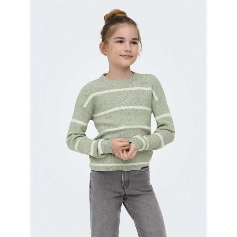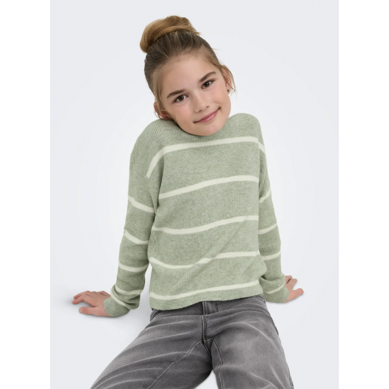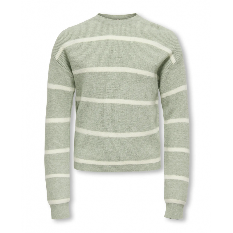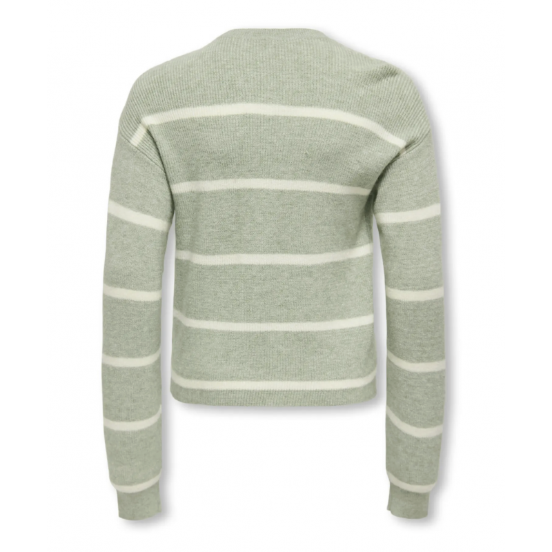 Opdater din piges garderobe med denne stilfulde langærmede striktrøje fra KIDS ONLY i farven Desert Sage med fine striber i Birch. Trøjen er designet i en blød og fleksibel jacquard-strik, hvor mønsteret er vævet direkte ind i stoffet og giver et elegant og moderne udtryk.