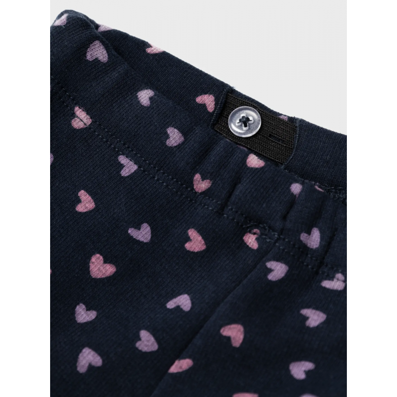 Giv din pige komfort og stil med Name It fleece sweat leggings i Dark Sapphire med hjerteprint (HEART AOP). Leggingsne er lavet af blød børnevenlig fleece (66% polyester, 30% bomuld, 4% elastan) med en børstet inderside, der holder benene varme og komfortable hele dagen. Den justerbare talje sikrer en perfekt pasform, mens det helt overfladeprintede design tilføjer et sødt og legende look. Med regular fit passer leggingsne perfekt til leg, skole eller afslapning. Et praktisk og stilfuldt valg til enhver piges garderobe.