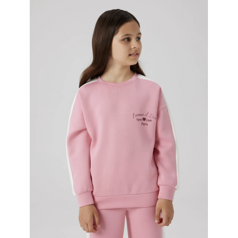 Tilføj en blød og komfortabel base til garderoben med denne Name It sweatshirt i lyserød (Orchid Smoke) til piger. Sweatshirten er fremstillet i let loop back kvalitet med 48% polyester, 48% viskose og 4% elastan, hvilket giver et blødt, fleksibelt og slidstærkt materiale. Den uopkradsede overflade og løkkerne på indersiden sikrer en behagelig følelse mod huden, mens rund hals og lange ærmer skaber et klassisk og alsidigt look. Ribkanter i ærmer og bund giver en god pasform, og den regelmæssige pasform sikrer komfort hele dagen. Pigmentprint tilføjer et subtilt, blødt visuelt udtryk, der passer til den lyserøde nuance. Sweatshirten er perfekt til skole, fritid og afslappede aktiviteter, hvor både stil og komfort er vigtig. Name It kombinerer moderne design, kvalitet og funktionalitet, hvilket gør denne sweatshirt til et must-have basisitem i enhver piges garderobe.