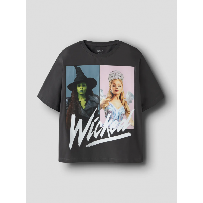 Opgrader din piges garderobe med den sorte Name It "Wicked" T-shirt. Denne t-shirt er fremstillet i 95% bomuld og 5% elastan i single jersey, hvilket giver en blød, let og strækbar pasform. Den har en rund hals, korte ærmer og et rubber print, der føles blødt mod huden. Inspireret af den populære musical “Wicked”, bringer t-shirten et strejf af teatermagi og sjov til hverdagen. Perfekt til både skole, leg og afslapning, hvor komfort og stil kombineres.