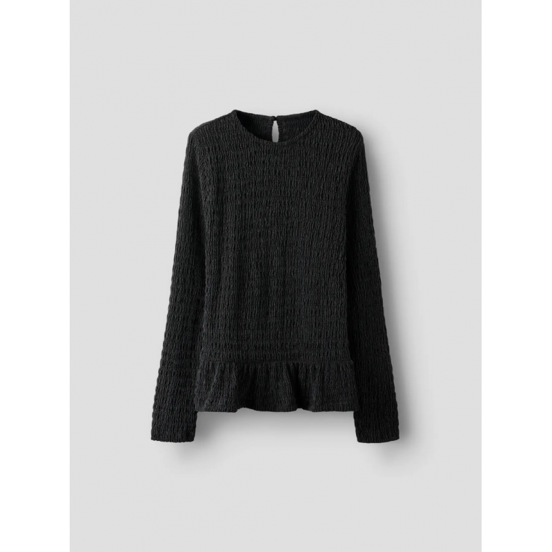 Opgrader pigens garderobe med denne Name it langærmede top i sort. Fremstillet i let og holdbart crinkle-vævet stofmed et subtilt krydsmønster, der giver en moderne tekstur og klassisk elegance. Toppen har runde ærmer og rund hals, peplum-detalje og knap- og stroplukning bagpå, hvilket tilføjer et feminint touch. Med regular fit sidder toppen behageligt og naturligt. Perfekt til både hverdag og særlige anledning.