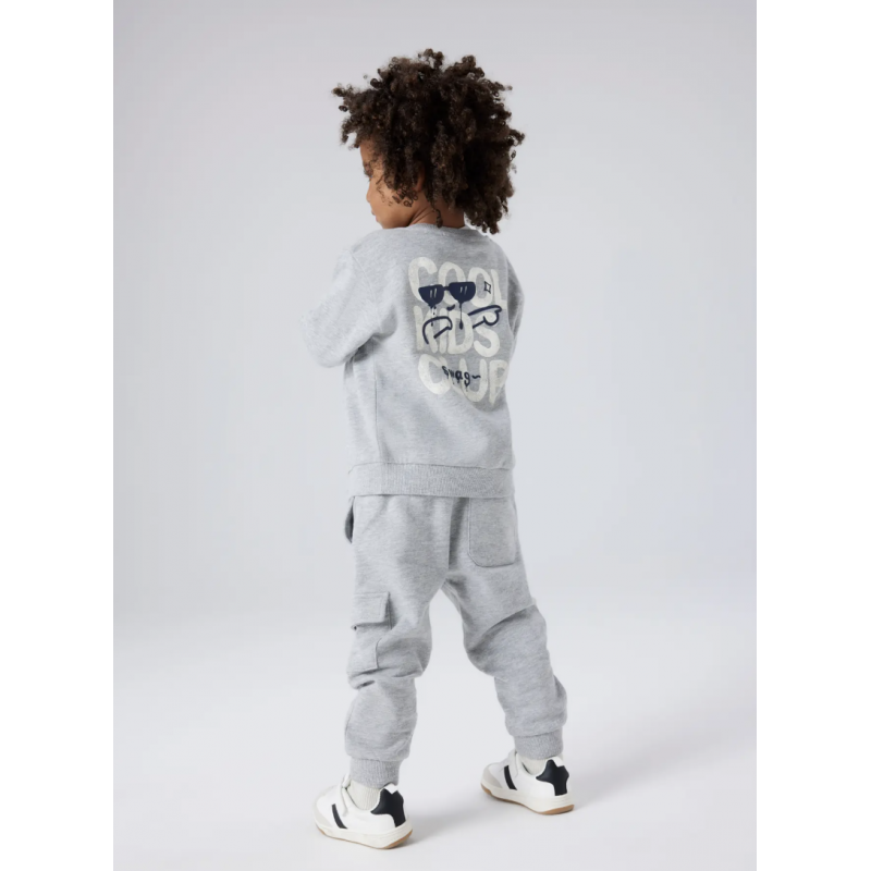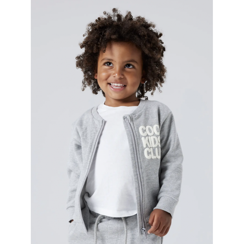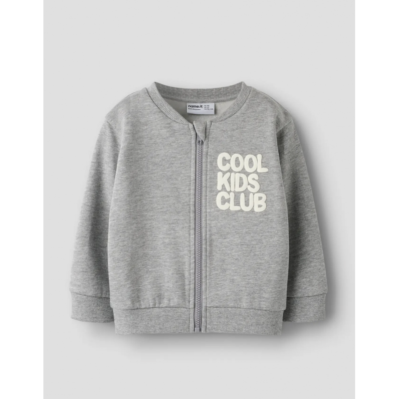 Giv dit barn et afslappet og moderne look med denne lysegrå sweatshirt med lynlås fra Name It. Den er fremstillet i 100% økologisk bomuld med en loop back-konstruktion, som giver et blødt og behageligt materiale, der samtidig er slidstærkt og åndbart. Sweatshirten har et klassisk design med rund hals, lange ærmer og lynlåslukning foran, så den er nem at tage af og på. Ribkanter ved ærmer og bund sikrer en god pasform, mens det let børstede indre føles ekstra blødt mod huden. Den melerede grå farve giver et tidløst udtryk, der passer til alt fra jeans til leggings. Perfekt som et let lag til skole, fritid eller kølige dage.