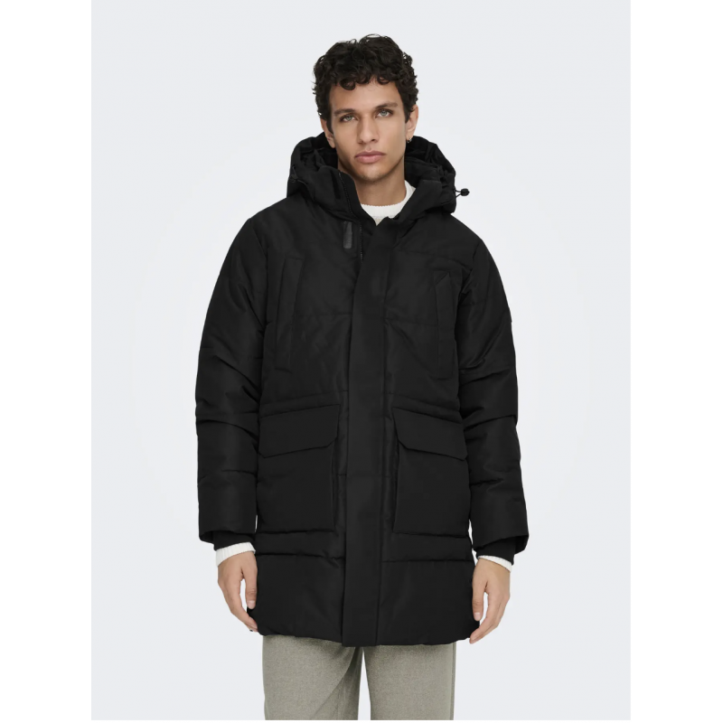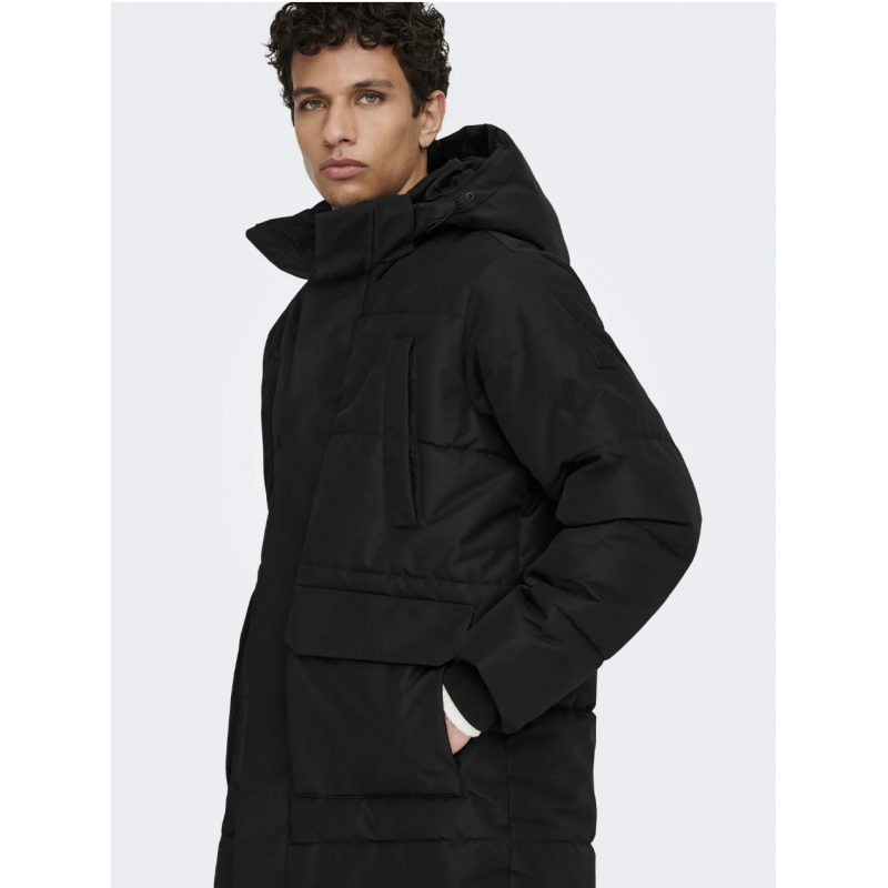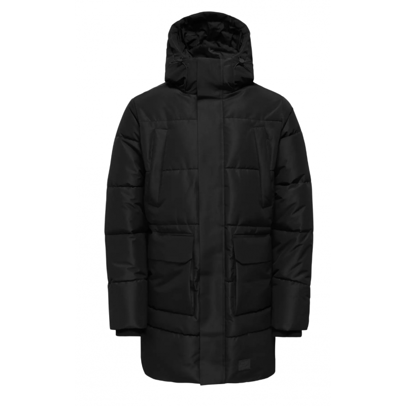 ONSCAM Parka til mænd er designet til både funktionalitet og stil. Jakken er fremstillet i vævet materiale med plain weave-konstruktion, hvilket giver et enkelt og holdbart udseende.
