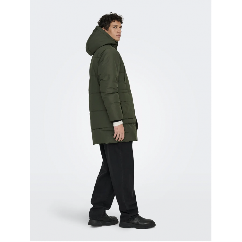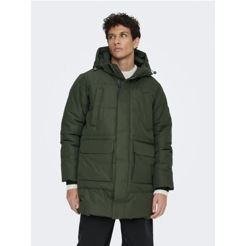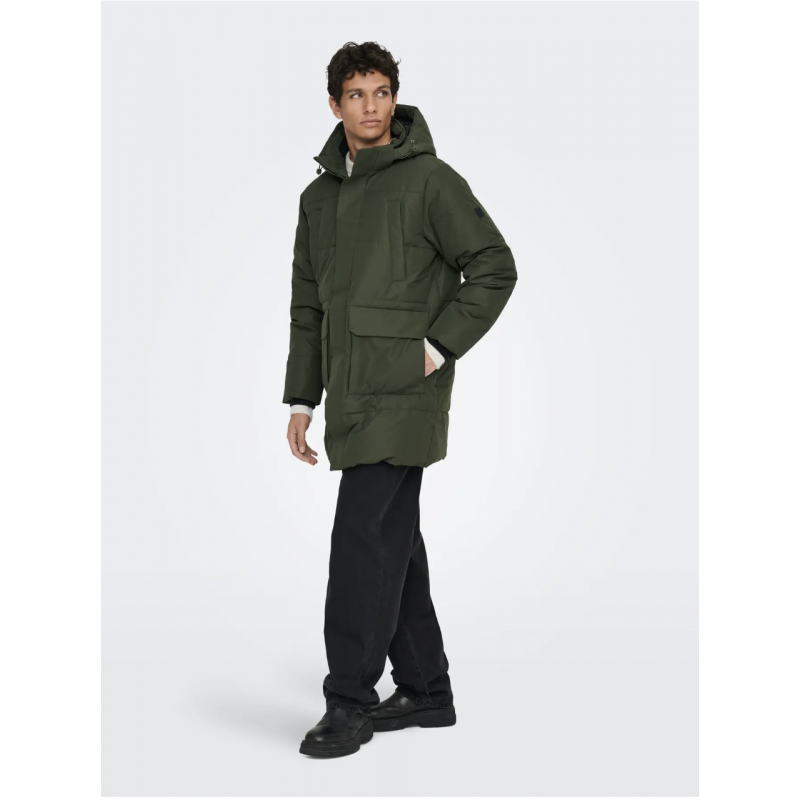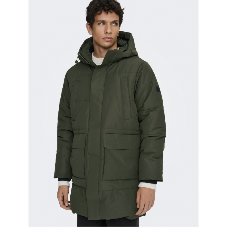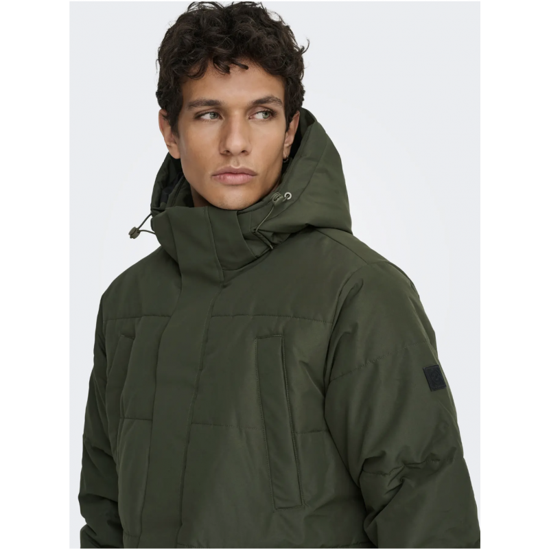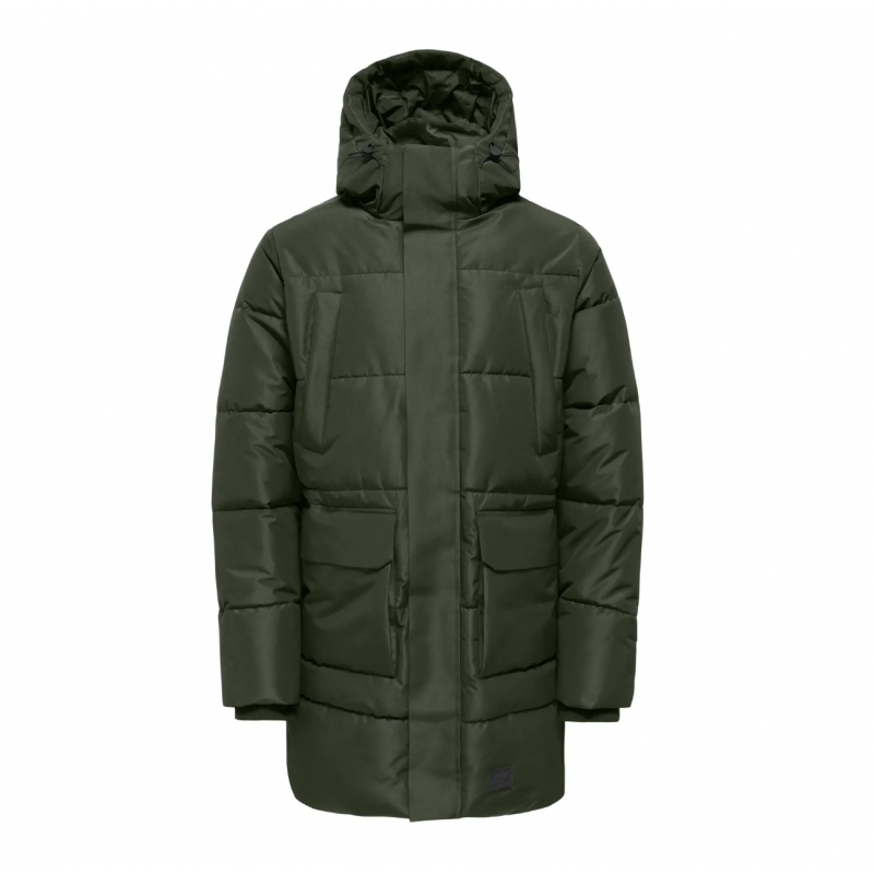 ONSCAM Parka til mænd er designet til både funktionalitet og stil. Jakken er fremstillet i vævet materiale med plain weave-konstruktion, hvilket giver et enkelt og holdbart udseende.