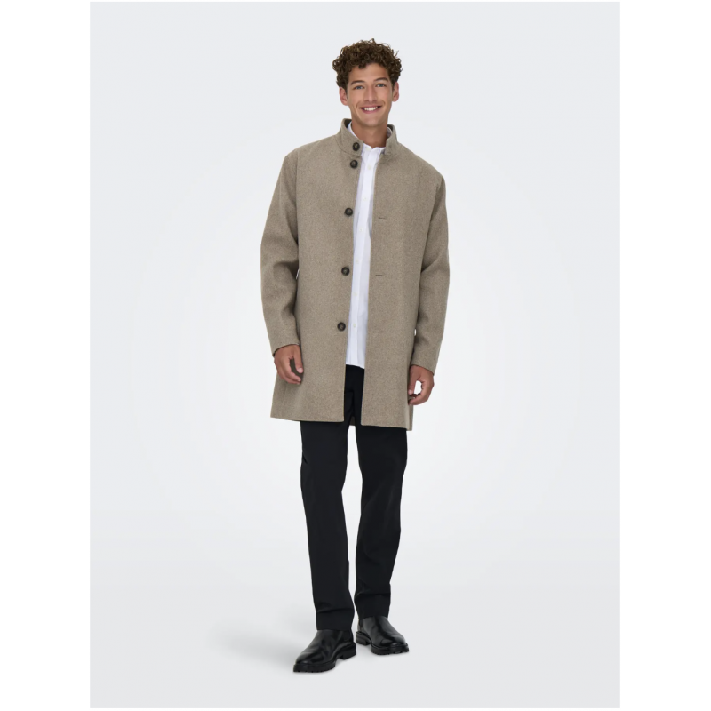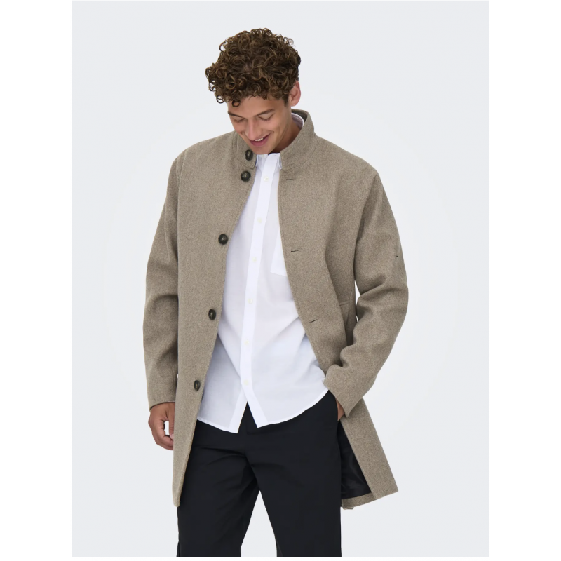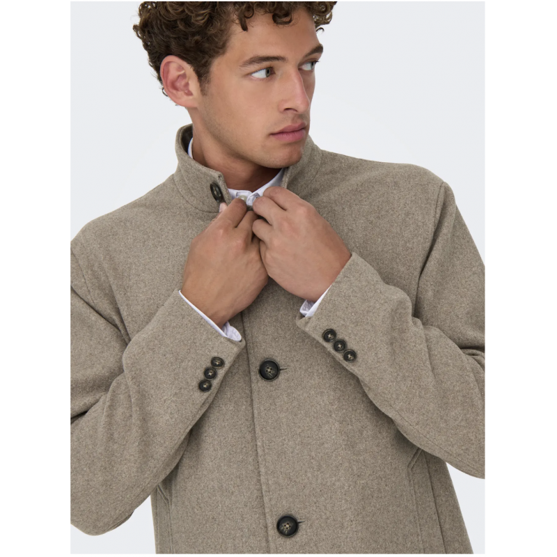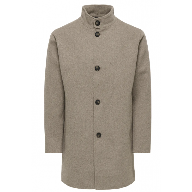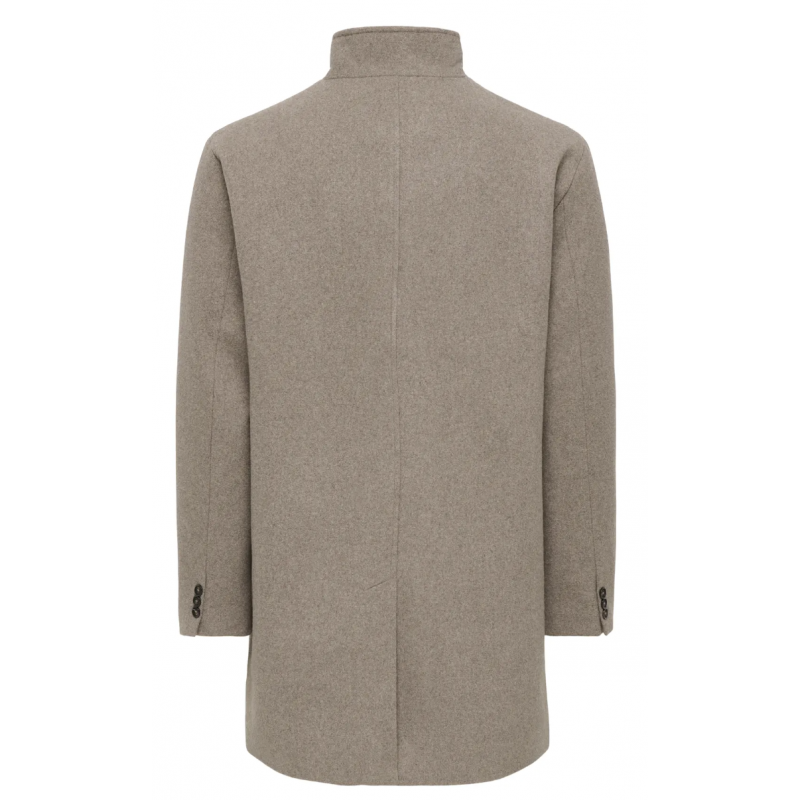 ONS Charles Wool Coat OTW NOOS er en klassisk herrefrakke fremstillet i et vævet materiale med plain weave-struktur. Frakken har en gennemtænkt materialekomposition, hvor både uld og polyester er delvist genanvendt, hvilket giver en solid og holdbar kvalitet.