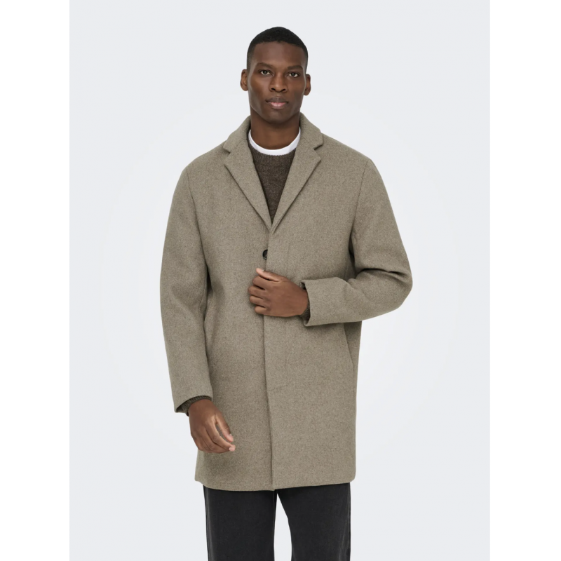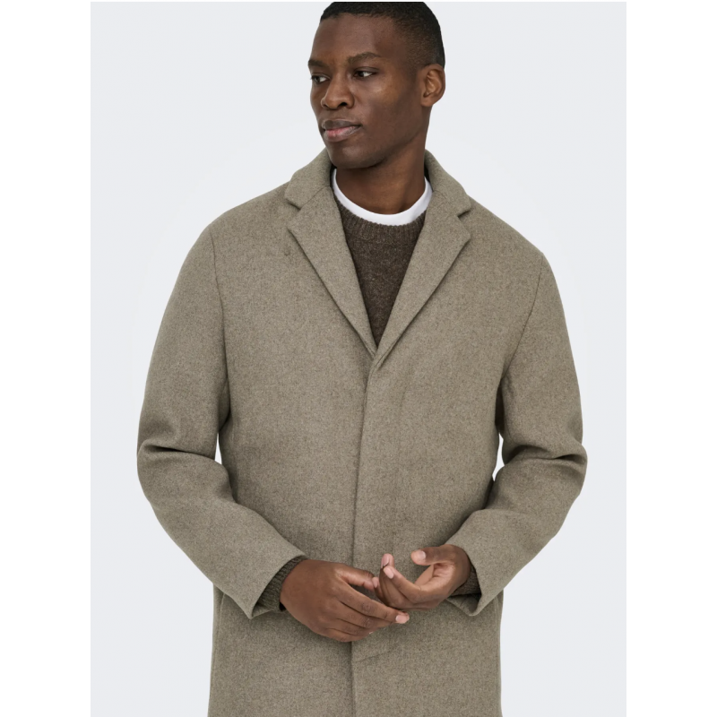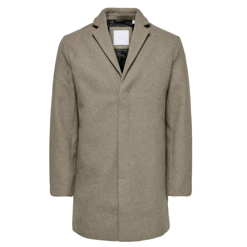 ONS Aron Wool Coat OTW NOOS er en klassisk herrefrakke fremstillet i et vævet materiale med plain weave-struktur. Frakken har en balanceret materialekomposition, hvor både polyester og uld er delvist genanvendt, hvilket bidrager til en solid og slidstærk kvalitet.