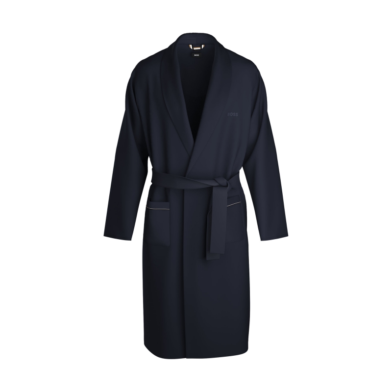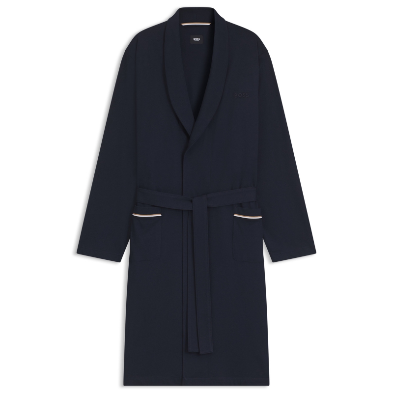 Denne BOSS Menswear morgenkåbe er fremstillet i behagelig, kraftig bomuldsjersey, der lukkes med et bindebælte. Tonet broderet logo og signaturstribede lommekanter.