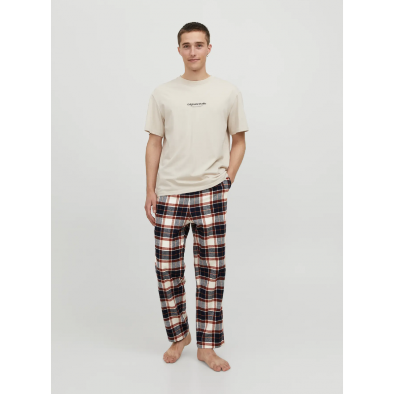 Gå efter komfort og en afslappet stil med “Rimon” pyjamasbukserne fra Jack & Jones. Bukserne er lavet i 100% vævet bomuld, som føles behagelig, let og åndbar mod huden – perfekt til både natten og afslappede morgener derhjemme. Den vævede kvalitet giver bukserne en holdbar og klassisk struktur, som ikke strækker sig ud ved brug. Taljen har en elastisk linning, der sikrer en god og fleksibel pasform, mens den påsyede gylpestikning giver et stilrent og enkelt look. Den rødlige farve med et tidløst mønster fuldender det hyggelige, rolige udtryk. Et oplagt valg til dig, der ønsker behagelige pyjamasbukser i solid, naturlig bomuldskvalitet.