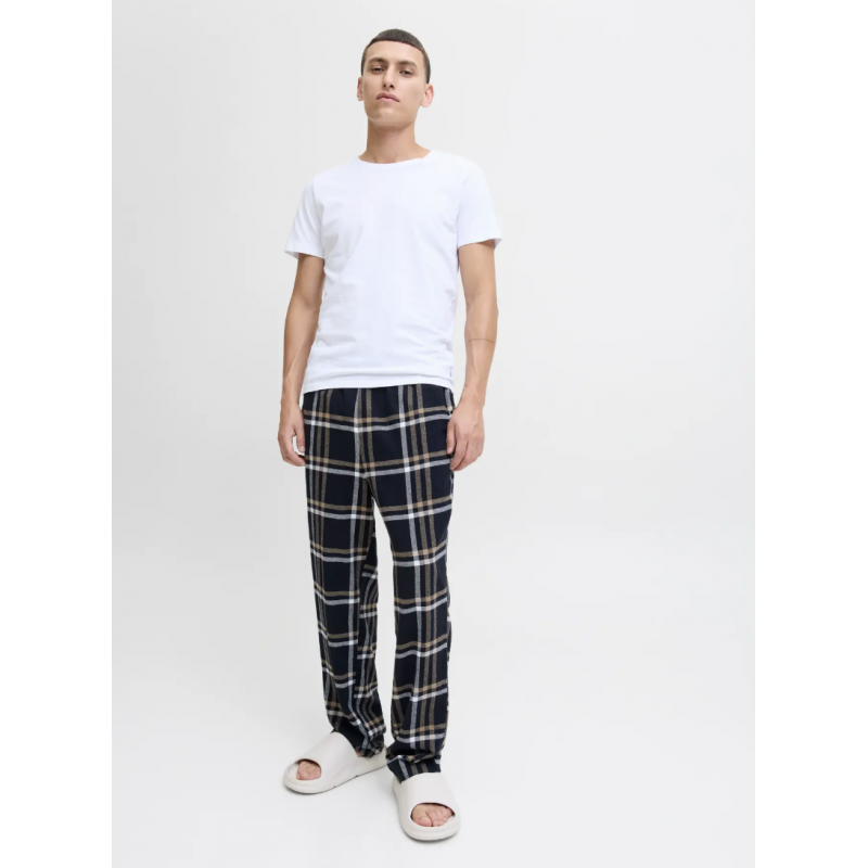 Gå efter komfort og afslappet stil med disse “Rimon” pyjamasbukser fra Jack & Jones. Bukserne er lavet i 100% vævet bomuld, som føles let og behagelig mod huden, uden at strække sig ud i brug. Den vævede kvalitet giver en ren og holdbar struktur, perfekt til både afslapningsdage og rolige nætter. Pyjamasbukserne har en elastisk talje, der sikrer en god og fleksibel pasform, samt et stilrent design i en klassisk mørkeblå nuance. Ideelle til dig, der sætter pris på en blød, åndbar og naturlig komfort, når du slapper af derhjemme eller sover.