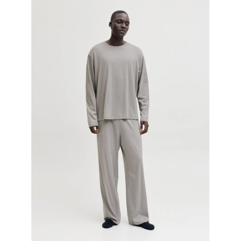 Skift til afslapningstilstand med dette “Alfred” loungewear sæt fra Jack & Jones. Sættet består af en langærmet T-shirt og matchende bukser i en blød 100% single jersey bomuldskvalitet, der føles let, behagelig og fleksibel mod huden. Perfekt til rolige morgener, fridage eller aftener på sofaen. Den klassiske rund hals, lange ærmer og standard pasform giver et afslappet, men velklædt udtryk. Bukserne har en elastisk linning, der sikrer god komfort og bevægelsesfrihed. Et enkelt og tidløst sæt i en flannelgrå nuance, der passer ind i enhver hverdagsgarderobe, hvor komfort er i fokus.