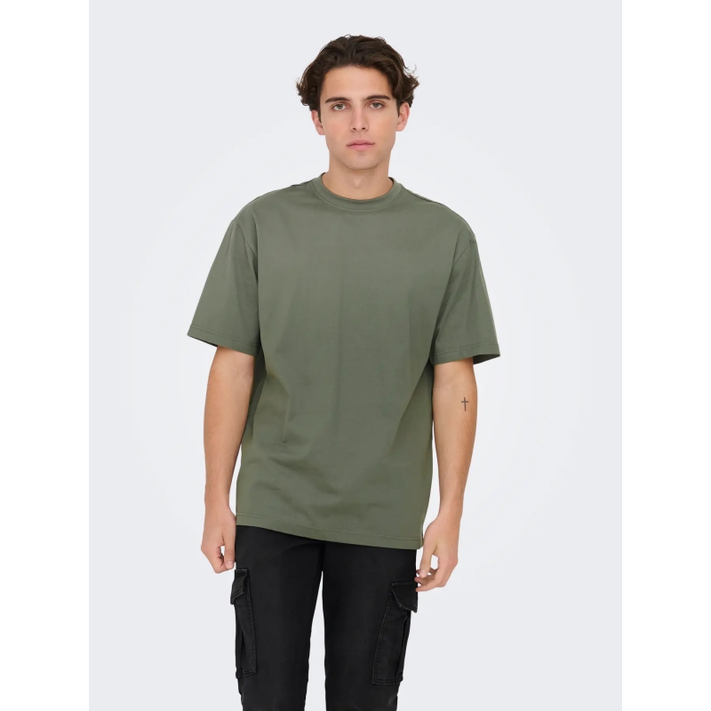 ONLY & SONS t-shirt i Castor Gray til herre | Relaxed fit