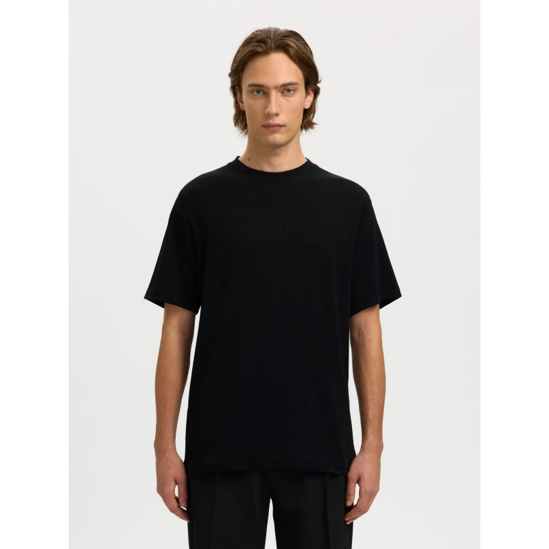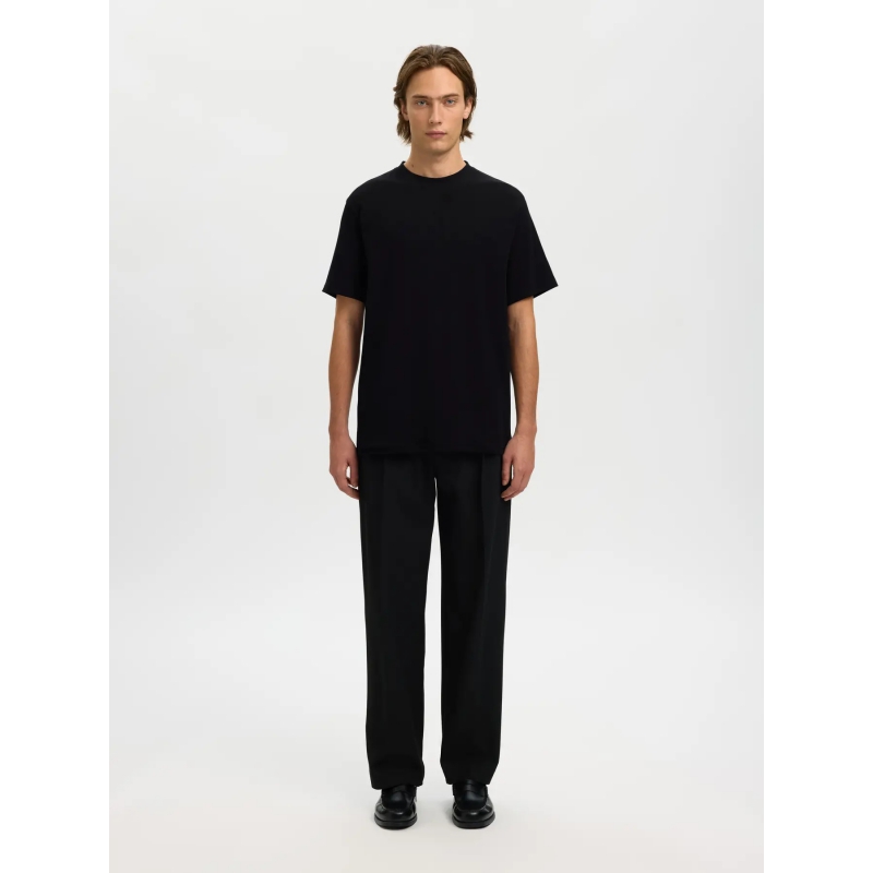 Selected rib t-shirt med rund hals i sort til herre