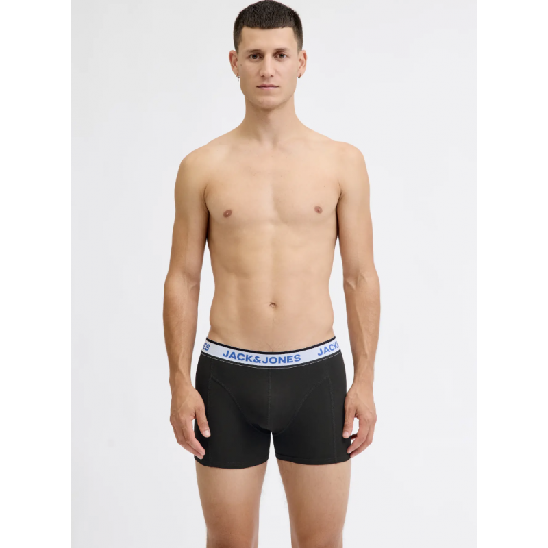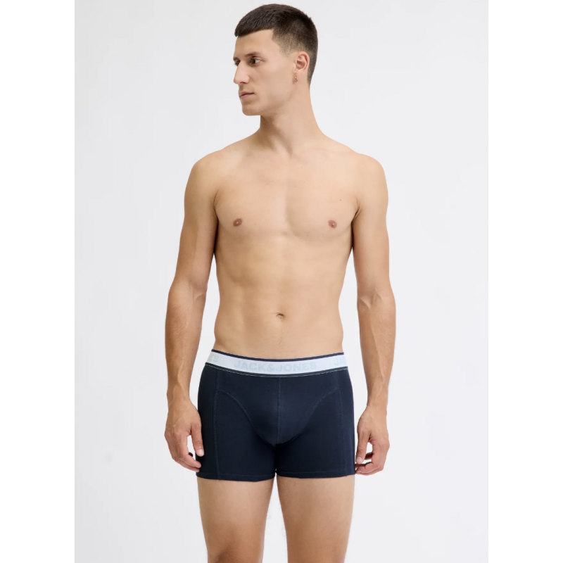 Opgrader din basisgarderobe med Jack & Jones "Adam" underbukser i en praktisk 3-pak i farverne Navy Blazer og sort. Disse trunks har en tæt pasform som almindelige boxer briefs, men med kortere benlængde for komfort og bevægelsesfrihed. Fremstillet i 95 % økologisk bomuld og 5 % elastan, sikrer materialet både blødhed og åndbarhed, mens den elastiske linning holder underbukserne på plads hele dagen. Trunksene er lette og holdbare takket være single jersey-strikning med Z-twist og høj kvalitetsbomuld. Ideelle til hverdag eller sport, hvor komfort og funktionalitet er afgørende. Med 3-pak får du praktisk variation og langtidsholdbar kvalitet fra Jack & Jones.