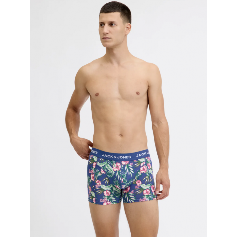 Tilføj lidt ekstra farve og personlighed til hverdagen med Jack & Jones “Sean Flower” trunks i en praktisk 3-pak. Modellerne kombinerer både ensfarvede og blomster-printede designs for et friskt og moderne udtryk. Underbukserne er fremstillet i en blød og åndbar single jersey af 95% økologisk bomuld og 5% elastan, som giver en behagelig stræk og god pasform hele dagen. Den elastiske linning sikrer, at trunksene bliver siddende komfortabelt uden at stramme. Med deres kortere benlængde end klassiske boxer briefs giver de fri bevægelse, hvilket gør dem ideelle til både hverdagsbrug og aktive dage. En stilfuld og komfortabel basisfavorit fra Jack & Jones.