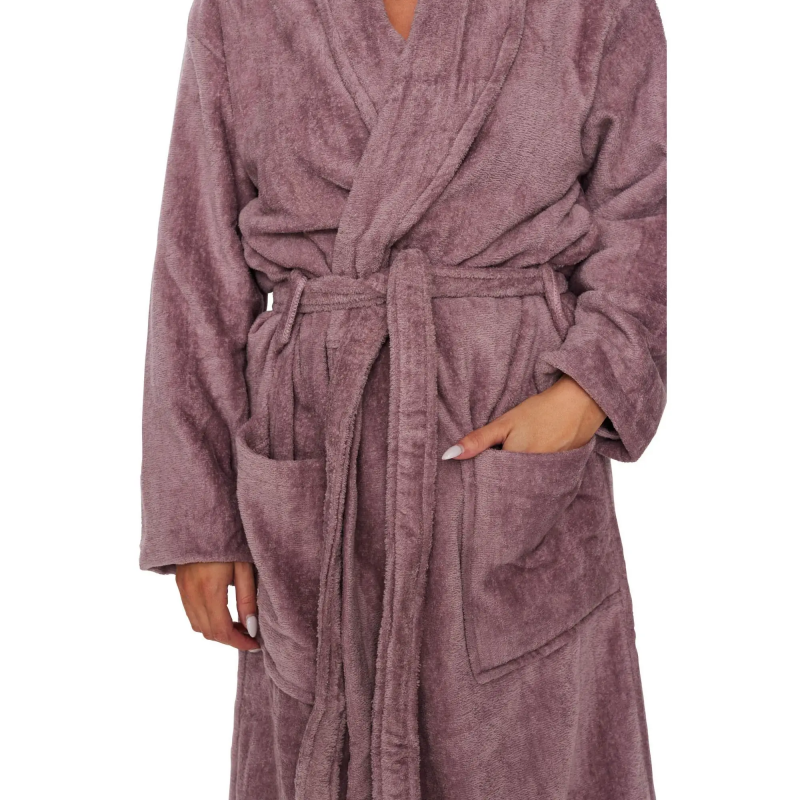 Vores DECOY lang morgenkåbe med piping til kvinder i lilla er den ultimative kombination af luksus og komfort. Denne morgenkåbe er skabt til at give dig en følelse af afslapning og velvære hver morgen og aften.